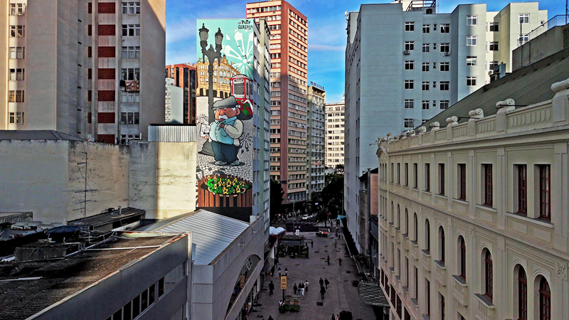Além do corredor da Rua XV, o artista já assinou murais com imagens de Nelson Mandela na Praça de Bolso dos Ciclistas e outras obras espalhadas pelo Centro. Hoje, suas pinturas estão presentes em todas as capitais brasileiras e em 29 países.