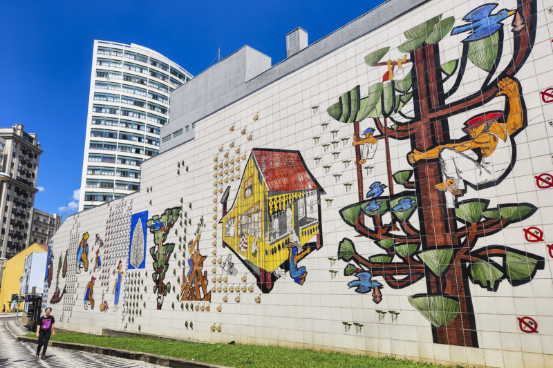 Curitiba se transformou em um museu a céu aberto; explore os murais gigantes do Centro e outros espaços de arte urbana que colorem e contam parte da história da capital paranaense